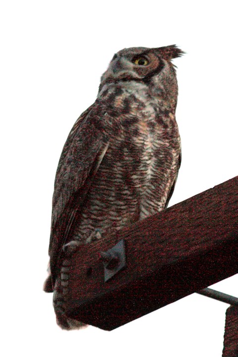 On the power pole immediately behind the house. It was late afternoon, close to dusk, I was using a heavy 300 mm lens at 1/30 sec. So it was gratifying to get a photo as clear as this.